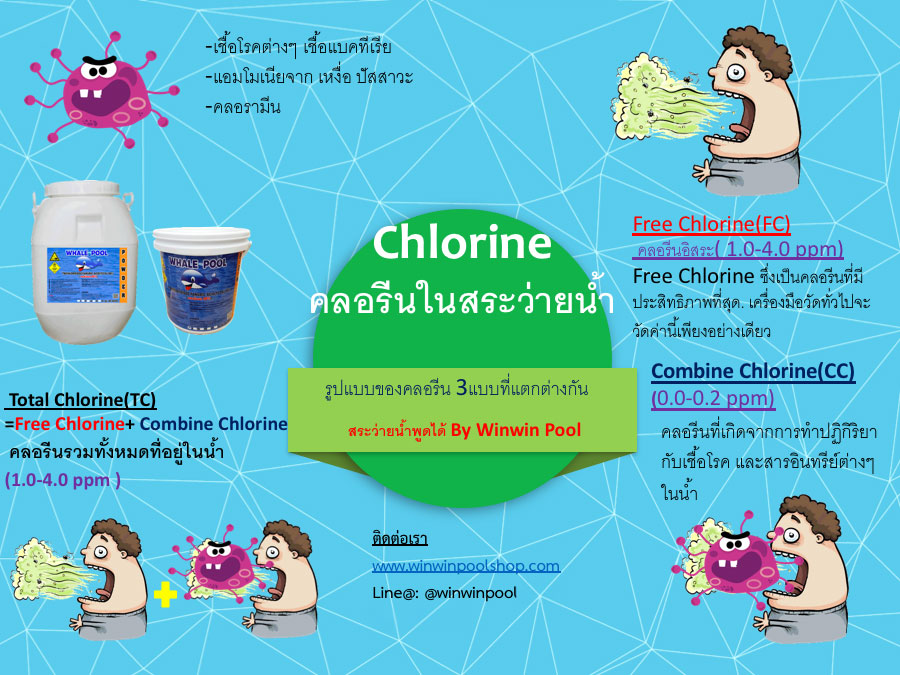 Total Chlorine – This type of chlorine is the sum of both free chlorine and combined chlorine.