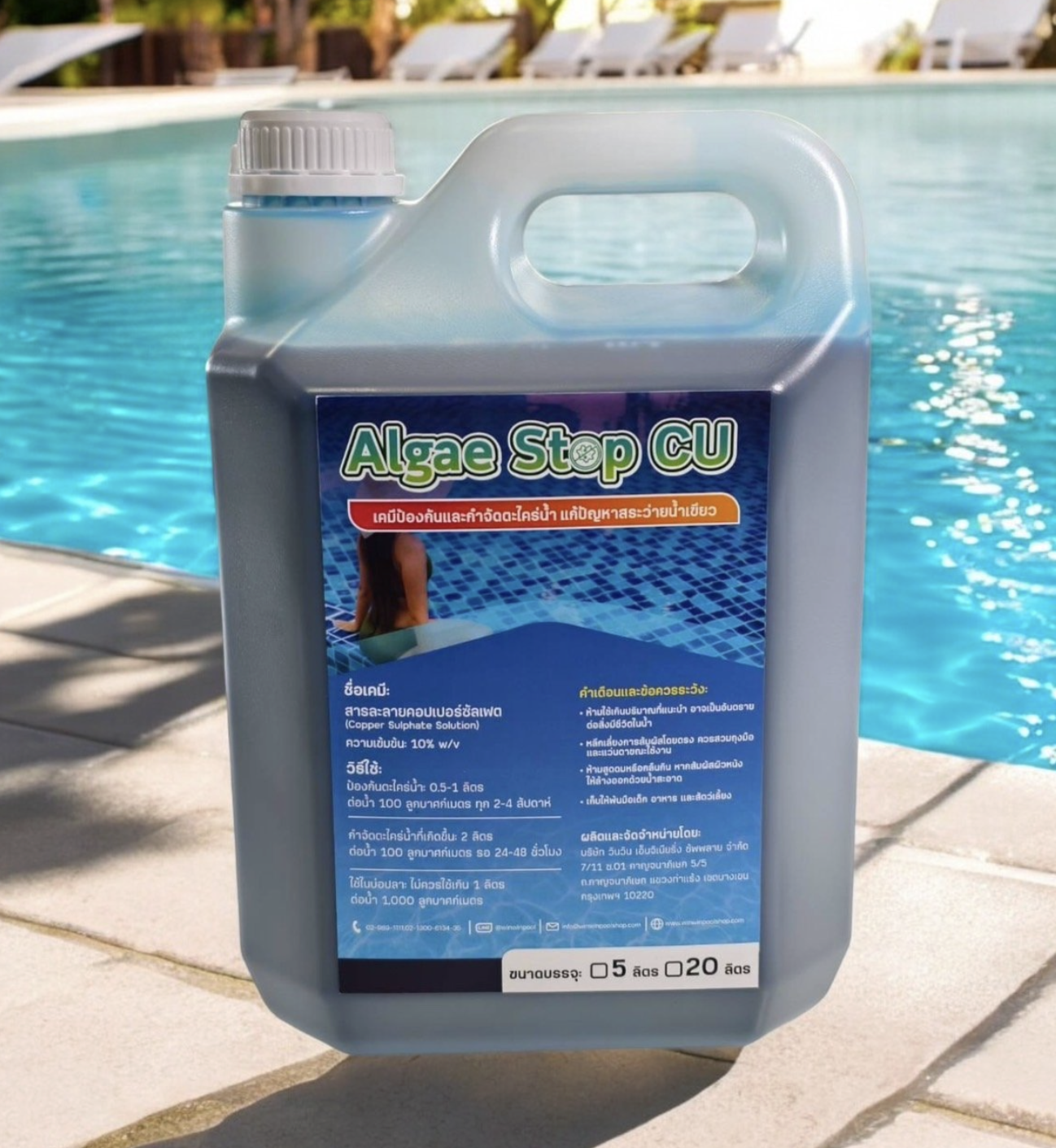 Algae Stop Cu ใช้ปริมาณ1 ลิตร ต่อสระ 50 m³