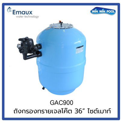 GAC900 36" Side Mount Valve 2" Max Flowrate 32 m³/Hr. Filter Area: 0.64 m² ความสูง(Height) 133.4 cm. ความกว้าง(Width 92.2 cm) ใช้ทราย (Sand) 750 kg. (update 01/04/2025)