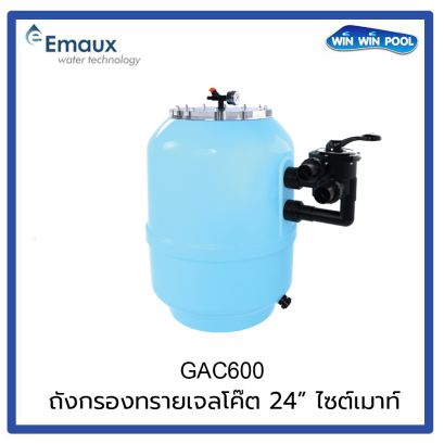 GAC600 24" Side Mount Valve 1.5" Max Flowrate 14 m³/Hr. Filter Area: 0.28 m² ความสูง(Height) 92 cm. ความกว้าง(Width) (62.7 cm) ใช้ทราย (Sand) 200 kg. (update 01/04/2025)