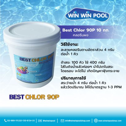 คลอรีนผง 1 ก.ก. ปริมาณการใช้ ใส่ในสระว่ายน้ำ 4 กรัม ต่อน้ำ 1 คิว แล้ววัดปริมาณ ให้ได้มาตรฐาน 1-3PPM (update 24/09/22)