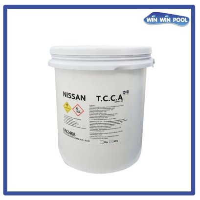 คลอรีนยี่ห้อ NISSAN (T.C.C.A 90%) ชนิดเผง บรรจุ 7 กก./ถัง ปริมาณการใช้ 3 g./น้ำ 1 คิว /รันปั้มทำงาน 8 ชม. (Update 17/03/2025)