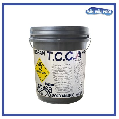 Nissan TCCA Granular in 10 Kg plastic drum. Stabilised chlorine 90% อัตราส่วน 3 กรัม ต่อน้ำ 1 คิว ถ้าสระ 100 คิว ใช้ 300 กรัม นำไปเทในสระ โดยรอบได้เลย (คลอรีนเกล็ดหรือคลอรีนเม็ด จะละลายช้ากว่าคลอรีนผง) (14/03/2025)