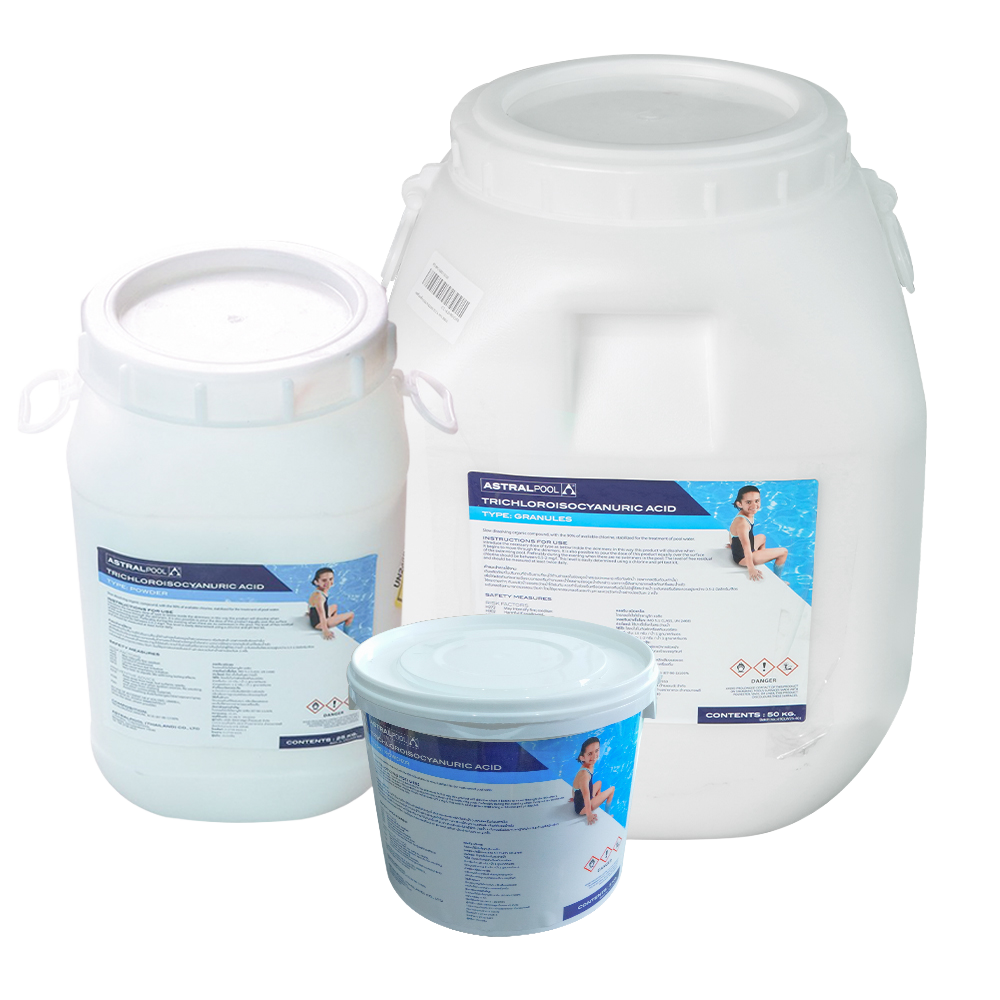 คลอรีน T.C.C.A 90 หรือ กรดไตรคลอโรไอโซไซยานูริก (Trichloroisocyanuric Acid) เป็นสารเคมีฆ่าเชื้อประสิทธิภาพสูงที่มีปริมาณคลอรีนที่พร้อมใช้งานถึง 90% ใช้ในสระว่ายน้ำ เพื่อการบำบัดฆ่าเชื้อโรคในสระว่ายน้ำ