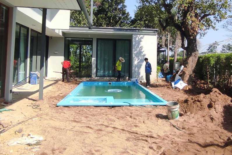 “ขั้นตอนการสร้างสระว่ายน้ำ ไฟเบอร์กลาส”
