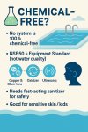 Even systems marketed as chlorine-free still rely on other chemical agents, such as:
