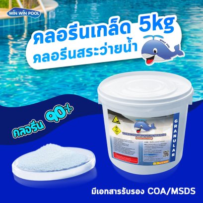 Sodium Dichloroisocyanurate (SDIC) /Shock Chlorine 5 KG. ประโยชน์ 1.สำหรับฆ่าเชื้อโรคในน้ำ สระว่ายน้ำ รวมไปถึงการฆ่าเชื้อโรคในโรงพยาบาล บำบัดน้ำเสีย บำบัดน้ำในฟาร์มปศุสัตว์ บำบัดน้ำที่มีสภาพน้ำไม่ดีให้ใสได้เร็วกว่าปกติ เนื่องจากการละลายที่เร็วกว่า เห็นผลได้เร็วกว่า 2.ทำให้น้ำใสเร็วกว่าปกติ เหมาะแก่การใช้กับสภาพน้ำที่ปรับยาก สภาพน้ำที่คุณภาพไม่ดี ข้อควรระวัง 1.เนื่องจากเคมีก้อนเล็ก อาจจะเป็นอันตรายต่อเด็กได้ง่าย ควรวางห่างจากมือเด็ก 2.เปิดใช้งานคลอรีน ควรปิดฝาให้สนิททุกครั้ง 3.ไม่ควรเก็บในห้องที่อุณหมูมิสูง วิธีการใช้งาน Shock Chlorine เม็ดฟู่ 1.สระคอนกรีต สามารถเติมเข้าในสระได้โดยตรง หรือใส่ในตะกร้า skimmer หรือ ใส่ ใน surge tanke ได้ หรือ ใส่ก้อนเม็ดฟู่ใน ใน ทุ่นลอยจ่ายคลอรีน ก็ได้ 2. สระไฟเบอร์กลาส และ สระไวนิล ให้เติมในตะกร้า skimmer หรือ ทุ่นลอยจ่ายเคมี ไม่แนะนำให้โยนลงสระโดยตรง ปริมาณ การใช้ 1.กรณีสภาพน้ำในสระว่ายน้ำปกติ เติม Shock Clorine SDIC สระ 50คิวเติม 200G/3วัน(10ก้อน/3วัน) 2.กรณีสภาพน้ำในสระว่ายสภาพไม่ดี เติม Shock Clorine SDIC สระ 50คิวเติม 400G/ ครั้ง (20ก้อน/ครั้ง) (update 2/03/2024)