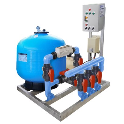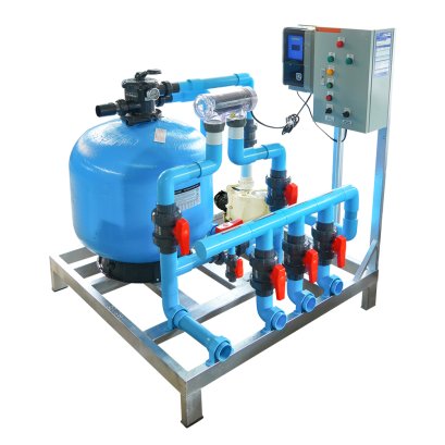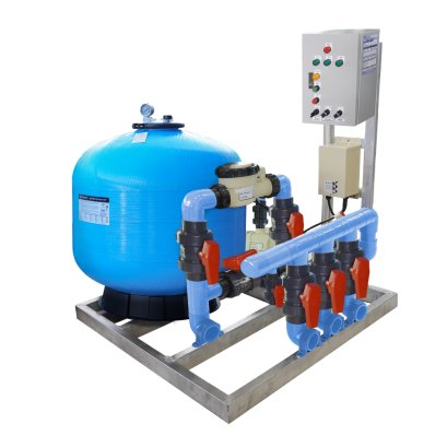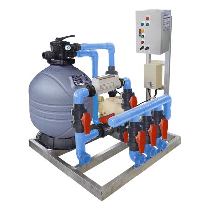 ประกอบด้วย 1. Pentair / Pump / Whisperflo / 0.75 HP / 220V = 1 2. Emaux / Sand filter / MFV24 / 24” / 14 m3/h = 1 3. Pentair / iCHLOR SALT CHLORINATOR = 1 4. Ball valve / ACE / 2” จำนวน = 3 5. Ball valve / ACE / 1.5” จำนวน = 3 6. Ball valve / ACE / 1/2” จำนวน = 1 7. Spring Check Valve / ACE / 1.5” = 1 8. Control panel / With transformer 100W = 1 9. Piping and fitting = 1 10. Sand Media 0.5–1.0 mm / 50 kg = 2 11. Steel frame, machine stand จำนวน = 1 12. Labor costs for assembling the machine = 1