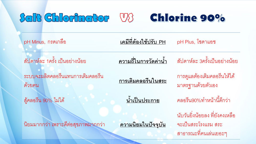 4.มีความยุ่งยากในการดูแลเครื่องมากกว่า ระบบคลอรีน