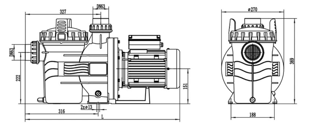 3 HP. 220V Flowrate 36 m³/h. (at Head 8 m,) Connection size 2" (Update 03/02/2025)