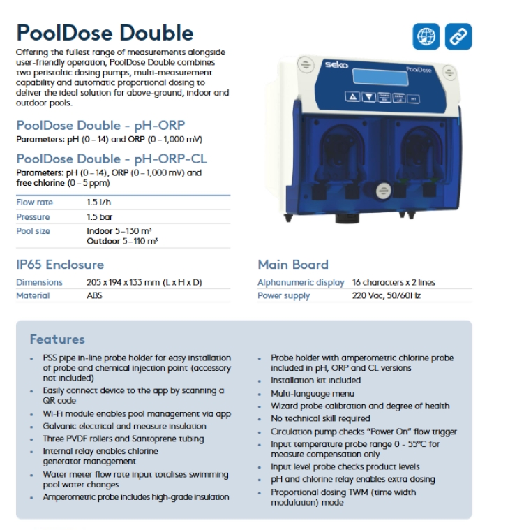 PoolDose Double (Embedded controller) PDPR1H1HAW100 (Double pH + ORP)