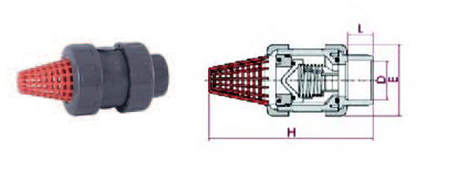 ฟุตวาล์วชนิดบอล True Union, EPDM ใช้งานน้ำดี ติดตั้งในแนวตั้งเท่านั้น Ball Foot Valve ㆍPVC-U body ㆍFemale solvent socket ㆍO-Rings in EPDM