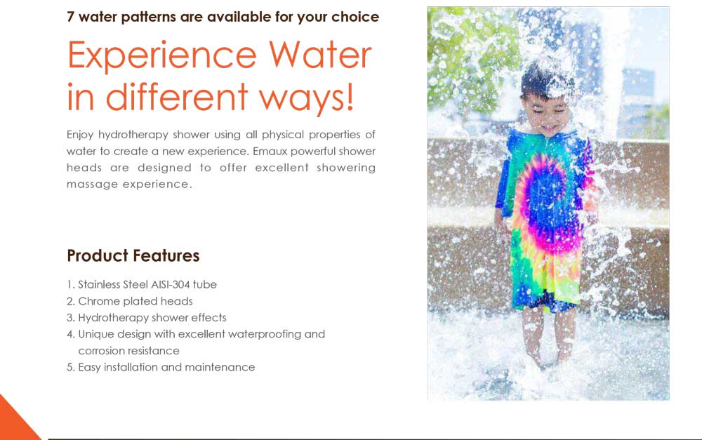 Enjoy hydrotherapy shower using all physical properties of water to create a new experience. Emaux powerful shower heads are designed to offer excellent showering massage experience.