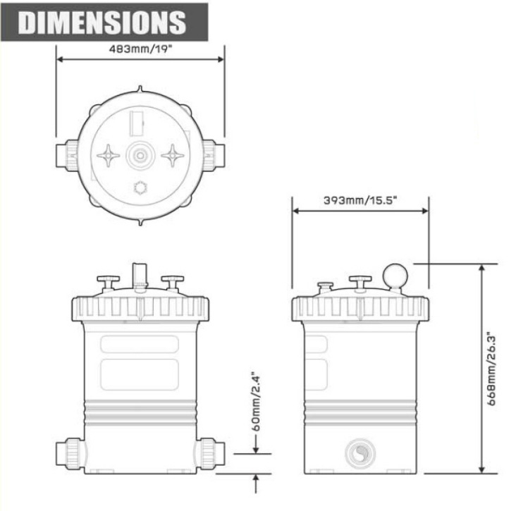 - ตัวล็อคฝาถังกรองที่สามารถถอดได้ง่าย เพื่อความสะดวกในการทำความสะอาดหรือเปลี่ยนไส้กรอง