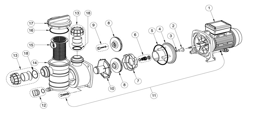 Shaft Sleeve (1,00KW -> 1,50KW) Assembly] for SWIMMEY PUMP Pentair (update 8/04/2023)(K1-18)