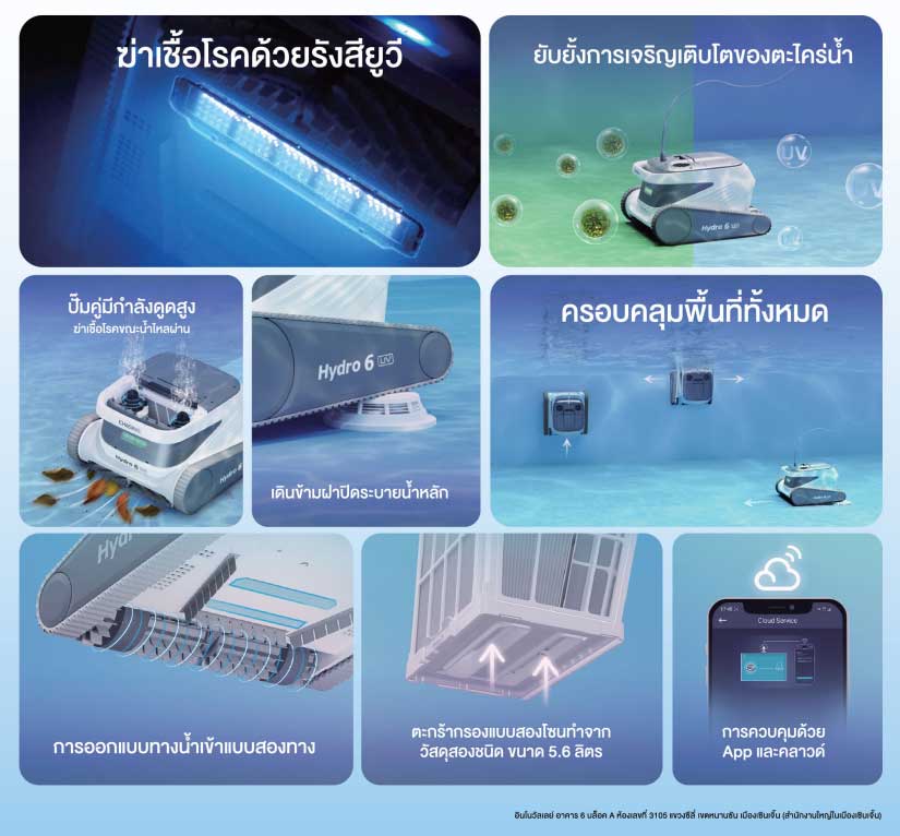 Chasing Hydro 6 UV พร้อมสายยาว 25m + Wi-Fi Control Box เป็นเครื่องทำความสะอาดสระว่ายน้ำฆ่าเชื้อด้วยแสงยูวีเครื่องแรกของโลก! ไม่เพียงแต่กรองเศษขยะได้เท่านั้น แต่ยังฆ่าเชื้อแบคทีเรียได้อีกด้วย (Update 14/03/2025)