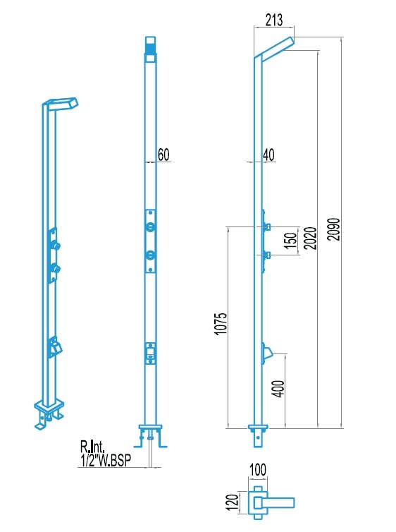 Shower for public use with 1 shower head and 1 timed button. The application of timed technology avoids unnecessary water consumption.