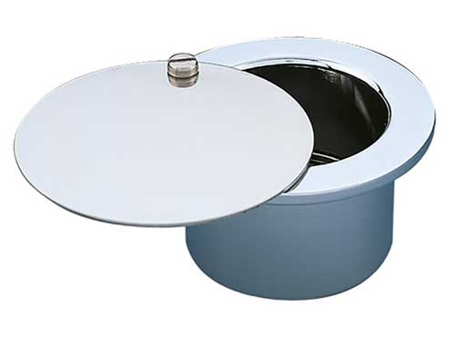Body in chrome-plated brass with (AISI-316) stainless steel cover. Internal 2" thread. Push fit connection.