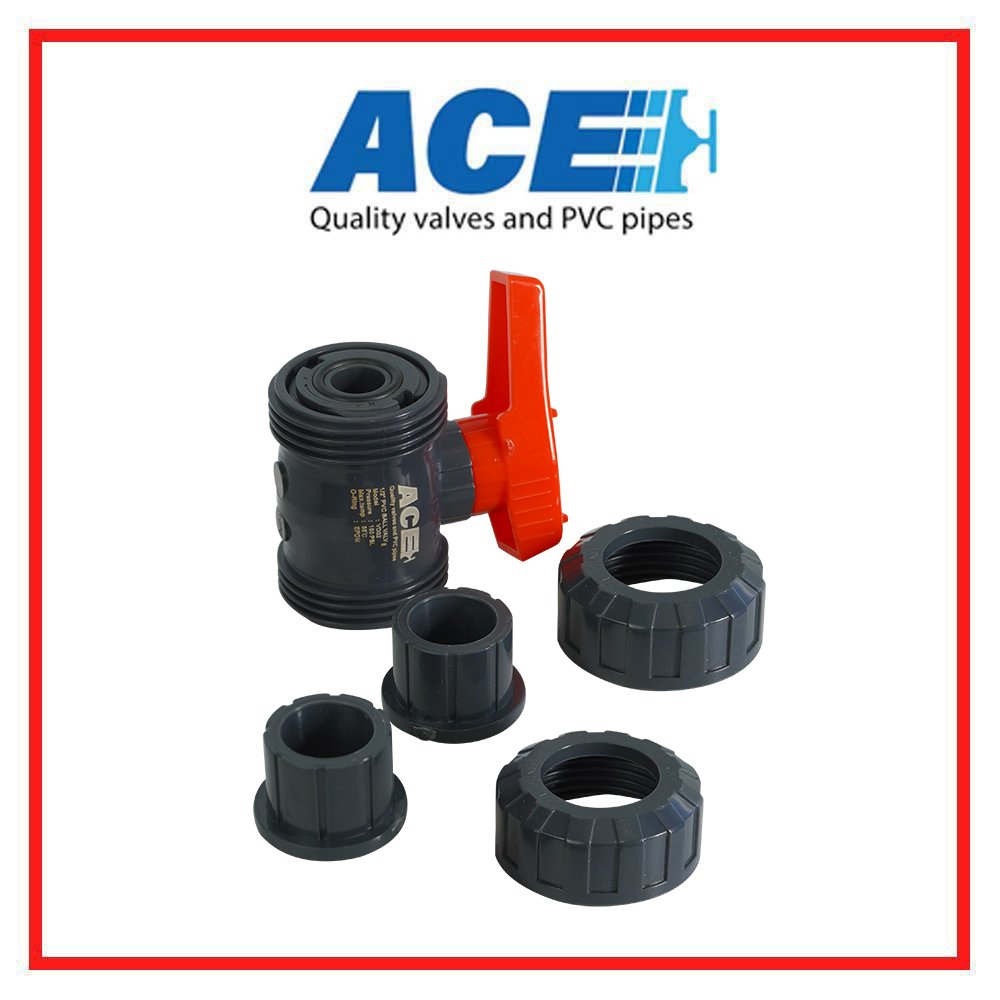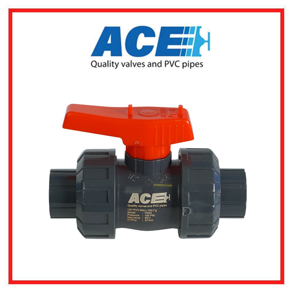 ACE TRUE UNION BALL VALVE 1/2" ABS Handle ABS Ball & Stem PVC Body EPDM Oring ขนาดกล่องบรรจุ 6x9.2x12.55 น้ำหนักรวมกล่องบรรจุ 245g. (update 23/11/2023)