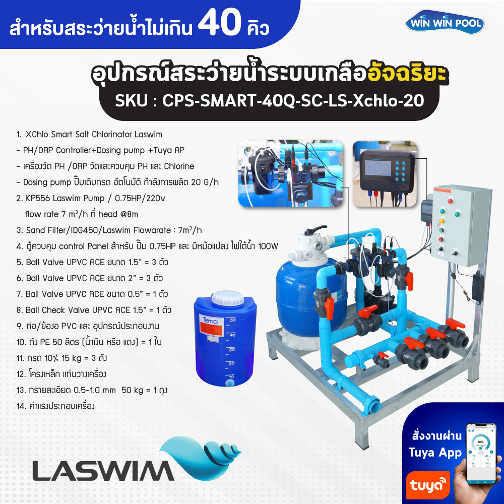 SKU : CPS-SMART-40Q-SC-LS-Xchlo-20. (สำหรับสระว่ายน้ำ ไม่เกิน 40Q)
