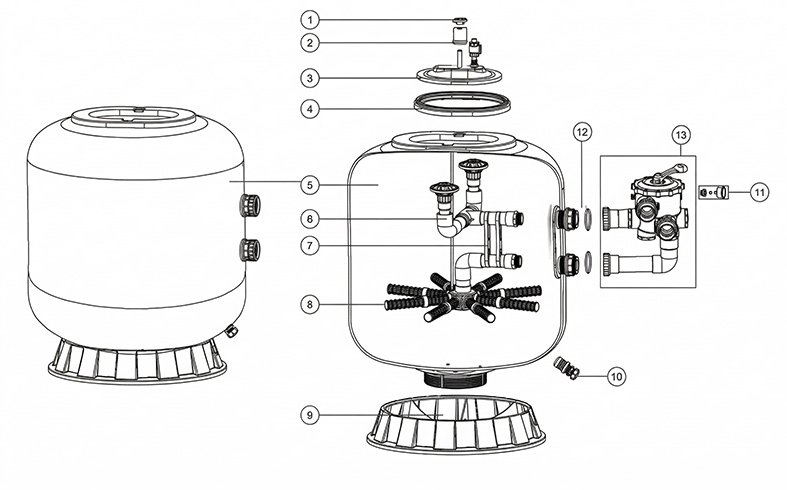 | 13 | 88280813W | 6 Way 2" Valve with Piping Kit, 2" union set x 3 and pressure gauge (White) | 1 | Contact sales | ||