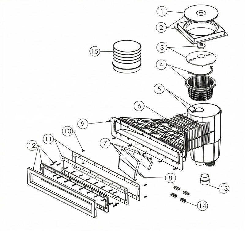 | 6A | 21910510485 | E161003 | EM0180-SV Skimmer body A+B included sealling plate | 1 | - | - |