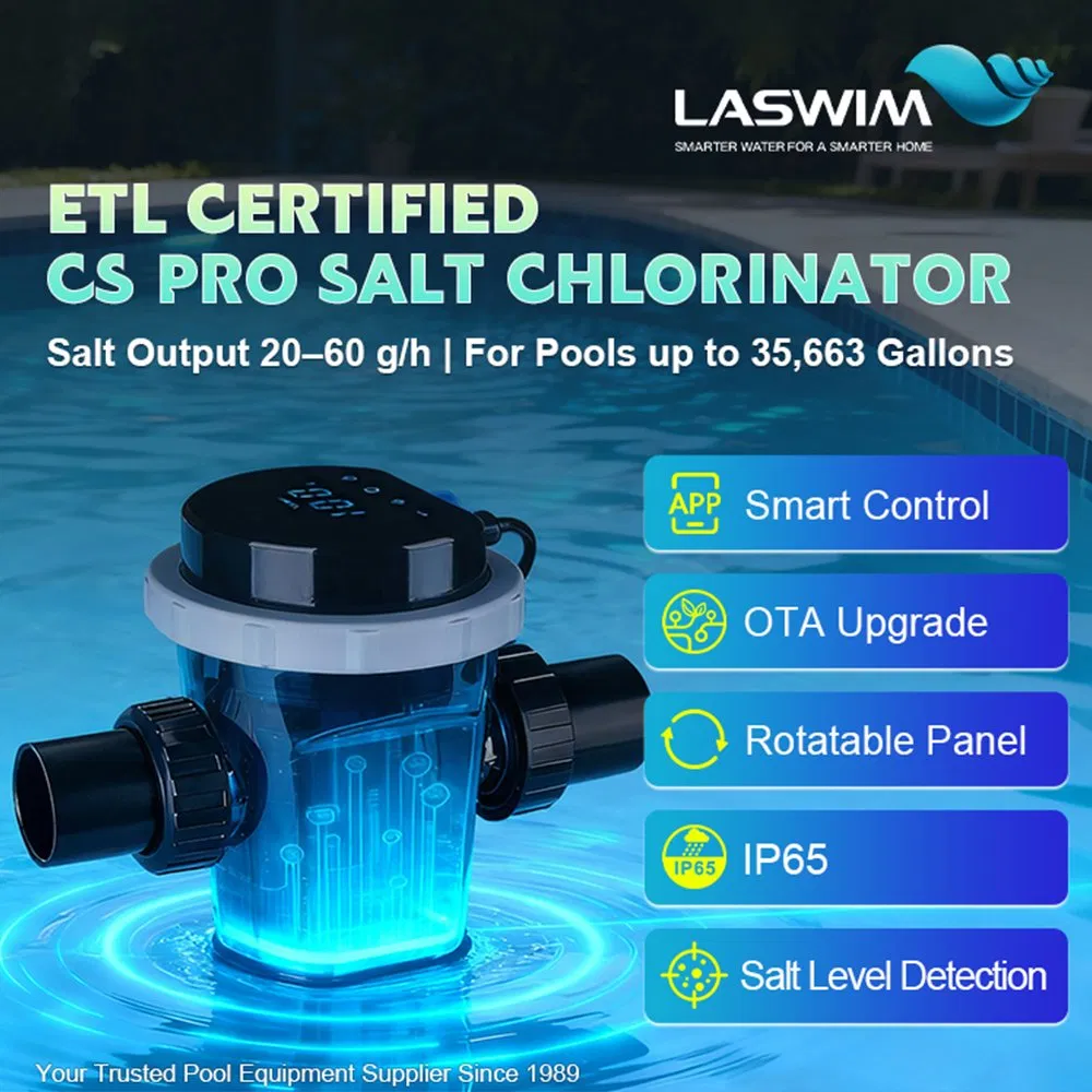 Transfomm your pool experience with the CS Pro Series Salt Chlorinator, featuring stylish elegance and cutting-edge smart pool management technology, effortlessly providing superior water purity and improving your swimming experience.