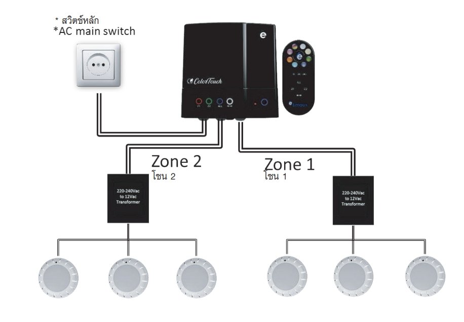 EMAUX ชุดควบคุมไฟใต้น้ำพร้อมรีโมทสำหรับซีรี่ย์ E-Lumen-X