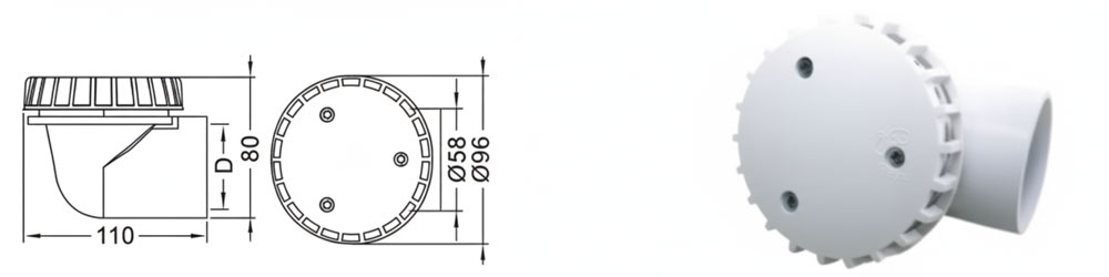 EM3822A Suction Drain Ell 1.5 " สีขาว