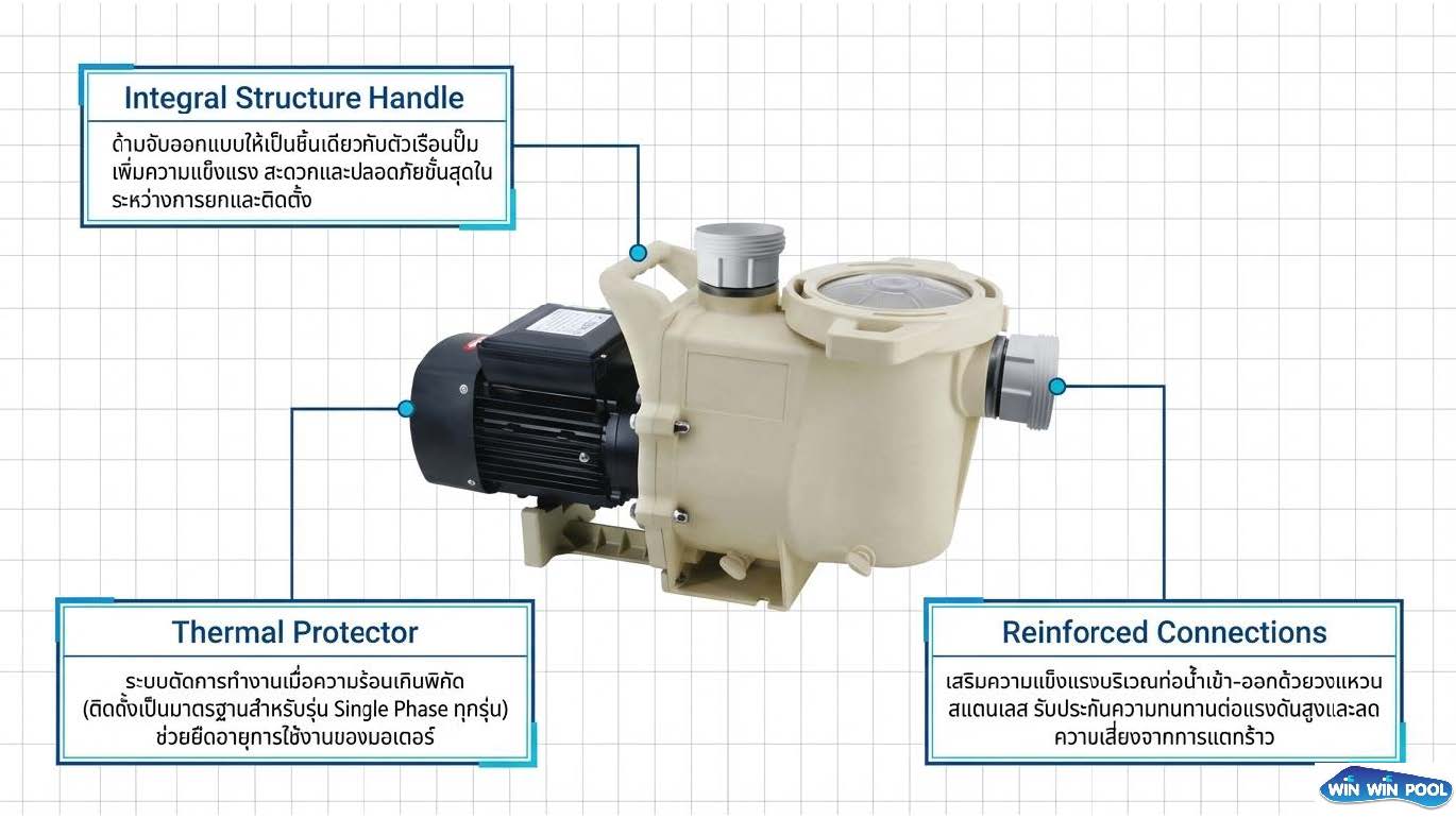 Integral Structure Handle: มือจับถูกหล่อขึ้นรูปเป็นส่วนเดียวกับตัวเรือนปั๊ม