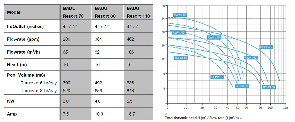 | Pool Volume (m3) | Turnover 6 hr/day | 390 m3 |