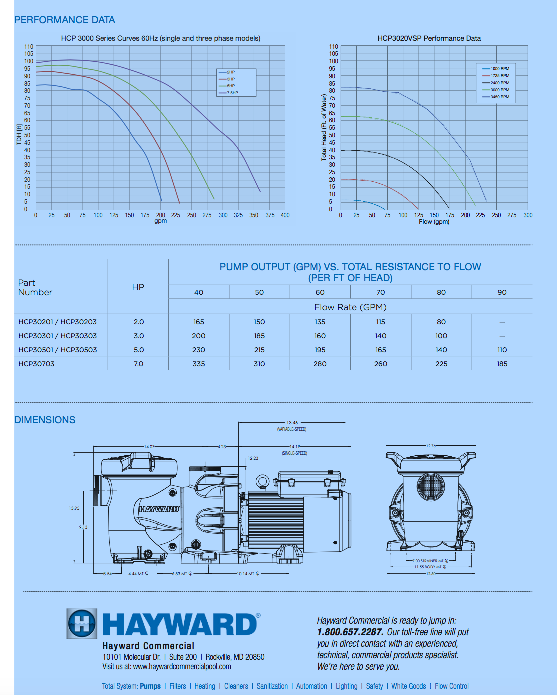 ปั๊มสำหรับสระว่ายน้ำ จากประเทศสหรัฐอเมริกา รุ่น HCP 3000 แบรนด์ HAYWARD สำหรับใช้งานกับสระว่ายน้ำโดยเฉพาะ เหมาะกับสระว่ายน้ำบ้านพักอาศัย ไปจนถึงสระว่ายน้ำเชิงพานิชย์ ปั๊มสระว่ายน้ำรุ่น HCP 3000 ได้มีการออกแบบในเรื่องของประสิทธิภาพ สำหรับปั๊มสระว่ายน้ำขนาดใหญ่ เพื่อให้มีความแข็งแรงและทนทาน อีกทั้งด้วยมาตรฐานที่มีอัตราการไหลสูงของ HCP3000 ที่เป็นปั๊มสระว่ายน้ำขนาดใหญ่แต่ยังสามารถใช้กับท่อขนาด 3” HCP3000 มีขนาด 5 HP และ 7 HP เพื่อให้คุณสามารถเลือกใช้ให้เหมาะสมกับขนาดสระว่ายน้ำของคุณได้อย่างมีประสิทธิภาพสูงสุด