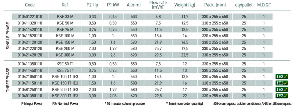 KSE100M1.0 HP7361000Single Phase215.4 m³/h55014