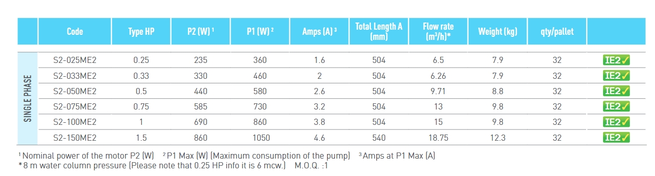 0.75 HP/1HP/230V , Flowrate 13 m³/h.(@Head 8 m,) Connection 1.5"/50 and 32/38 mm Pack 33x22.5x65 cm Weight 9.8 kg (Update 01/02/2025)