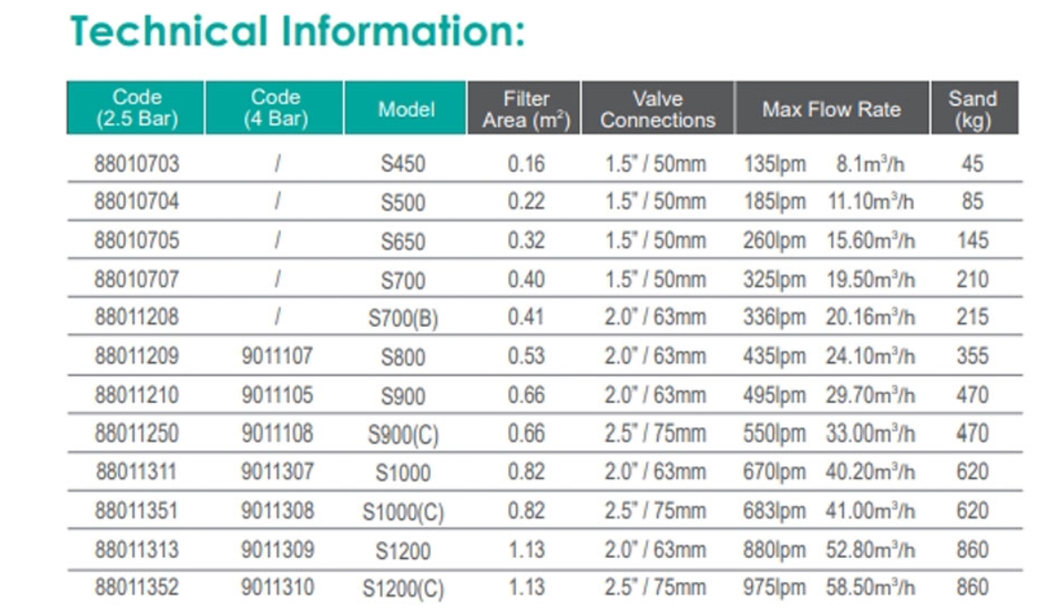 Max Flowrate 58.50 m³/Hr. Filter Area: 1.13 m²