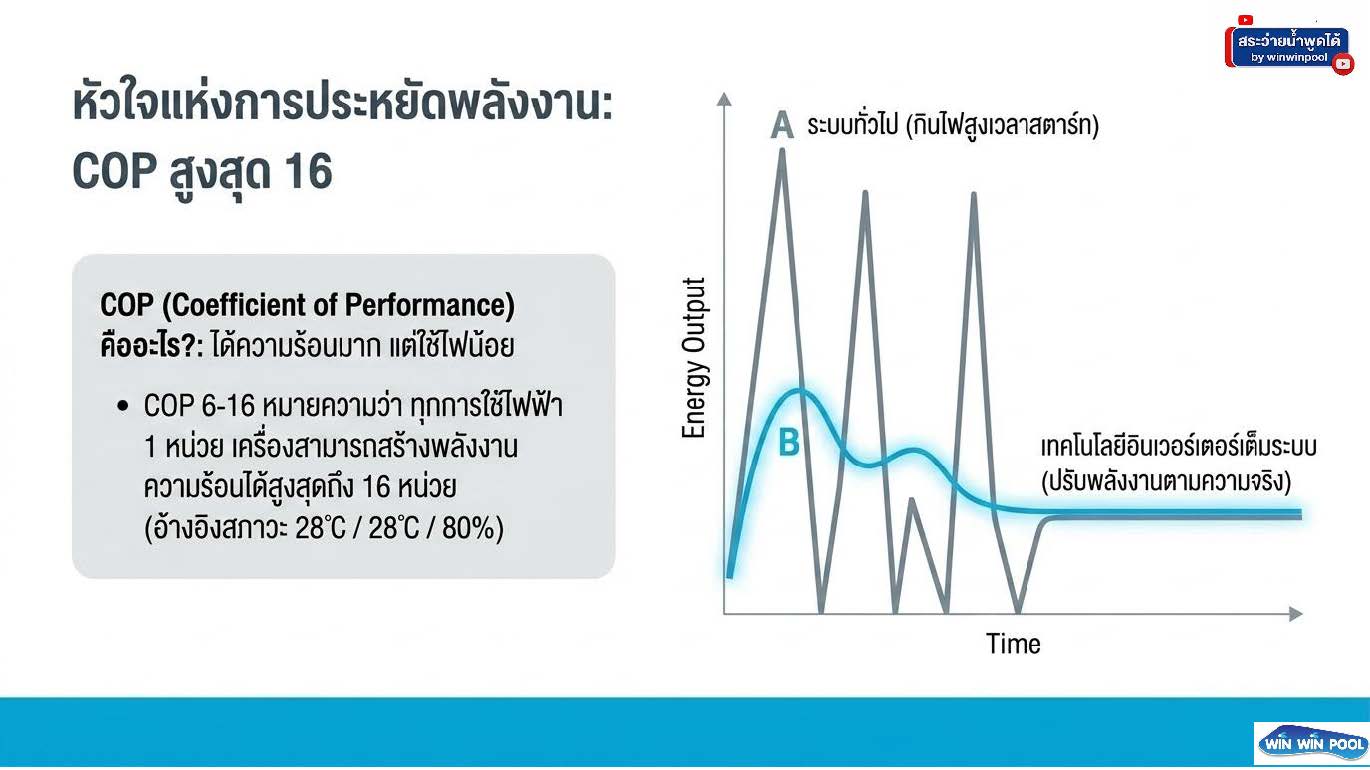 เครื่องทำอุ่นสำหรับสระว่ายน้ำ ด้วยระบบถ่ายเทความร้อนประสิทธิภาพสูง ผสานเทคโนโลยีควบคุมการทำงานแบบอินเวอร์เตอร์เต็มระบบ
