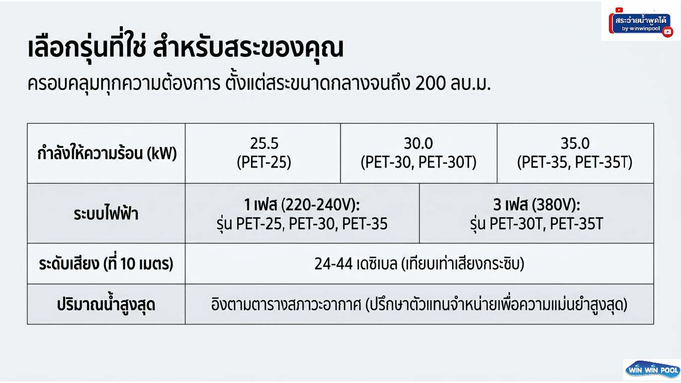 เครื่องทำน้ำอุ่นสระว่ายน้ำรุ่น ProElyo Touch ขนาด 35 kW ใช้ ไฟ Single phase 220-240 V ( (update 04/03/2026)