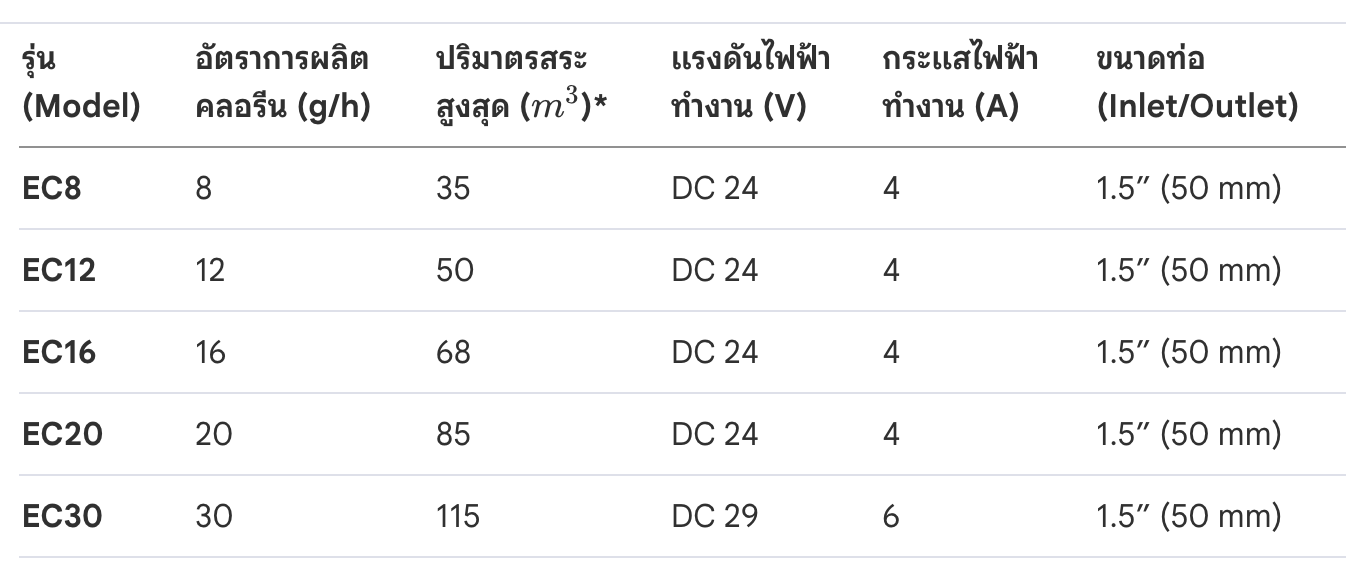 รายงานวิเคราะห์ข้อมูลจำเพาะและมาตรฐานวิศวกรรมการติดตั้ง: เครื่องผลิตคลอรีนจากเกลือซีรีส์ EC (EC8 - EC30)