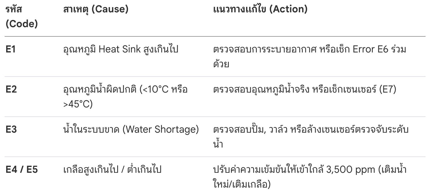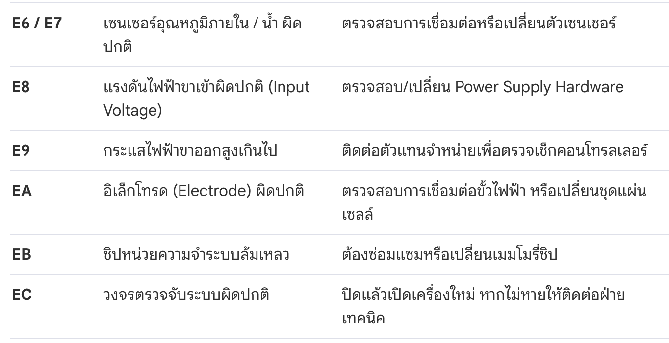 6. การวินิจฉัยรหัสข้อผิดพลาด (Troubleshooting Guide)