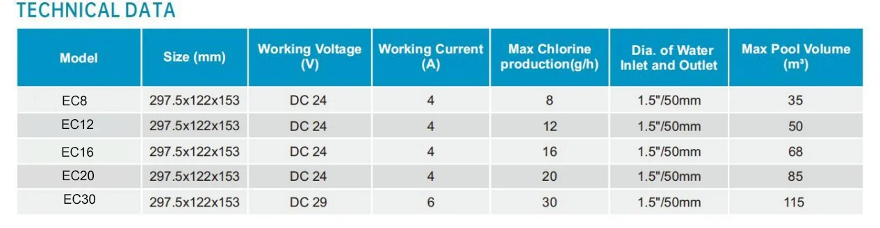 เครื่องผลิตคลอรีนเกลือ EC20 series salt chlorinator:20 g/hr For Pool ≤ 85 คิว(m³)