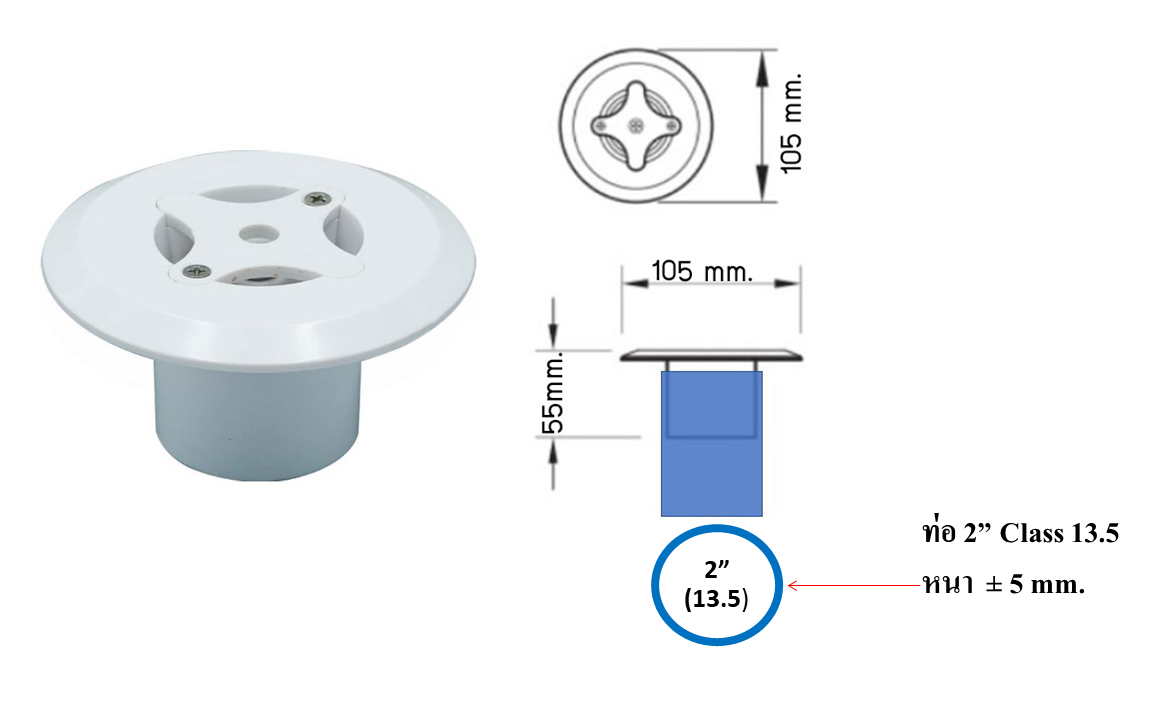 PSF-20-W หัวจ่ายน้ำพื้นสระสีขาว Floor Inlet 1.5&2"