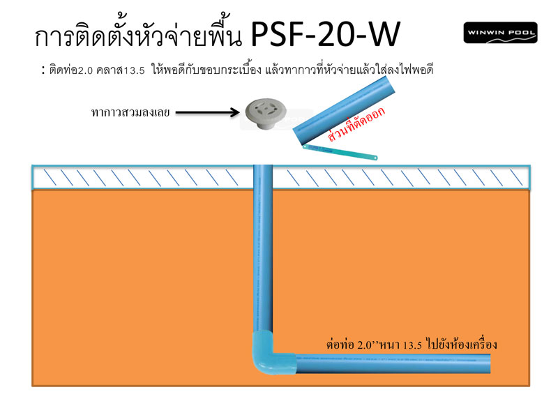 – ติดตั้งที่พื้นสระว่ายน้ำเพื่อให้ได้การกระจายน้ำที่สม่ำเสมอ และมีประสิทธิภาพ
