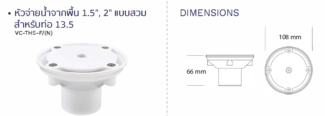 Floor Inlet VC-THS-F/(N) หัวจ่ายน้ำพื้น 1.5", 2" แบบสวม สำหรับท่อ 13.5