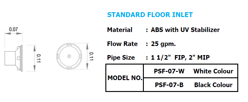 PSF-07-B Standard Floor Inlet 1.5&2 นิ้วสีดำ