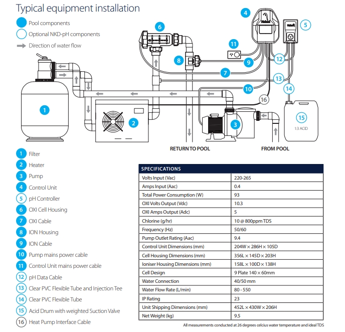 | Chlorine (g/hr) | 10 @ 800ppm TDS |