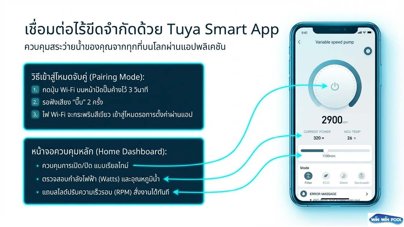 ปั้มอัจฉริยะ มอเตอร์ IE4 Laswim HLVSP Variable Speed Pump 1.5HP/220V (WIFI, TUYA APP)ปรับความเร็วรอบได้
