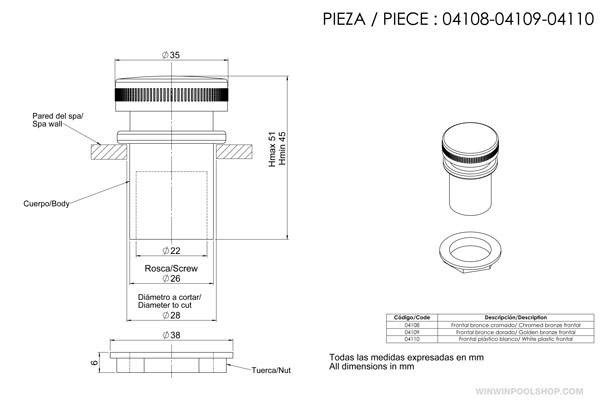 หัวจ่ำยน้ำ ผนังสระ Ø 50mm, Connection 1.5", White Colour