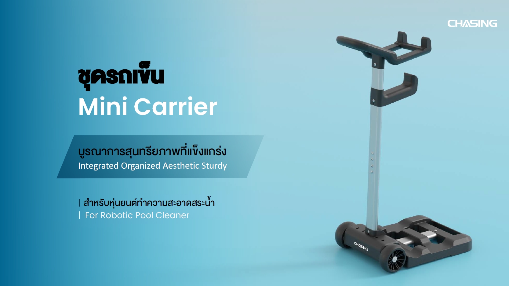 CHASING Mini Carrier เป็นชุดรถเข็นของหุ่นยนต์ทำความสะอาดสระว่ายน้ำ ซึ่งสามารถใช้ได้กับหุ่นยนต์ทำความสะอาดสระว่ายน้ำ CHASING ทุกรุ่น ชุดรถเข็นมีการออกแบบการแบ่งฟังก์ชั่นที่อำนวยความสะดวกในการจัดเก็บ ฐานร่องให้การปกป้องแปรงอย่างเอาใจใส่ คุณสามารถขนย้ายน้ำยาทำความสะอาดสระว่ายน้ำได้อย่างง่ายดายโดยใช้ล้อข้าง โครงสร้างที่หรูหรา น้ำหนักที่ถือขึ้นเครื่อง และความทนทานสูง ทำให้ CHASING Mini Carrier เป็นอุปกรณ์ที่ดีที่สุดในการขนย้ายและจัดเก็บหุ่นยนต์ทำความสะอาดสระว่ายน้ำ