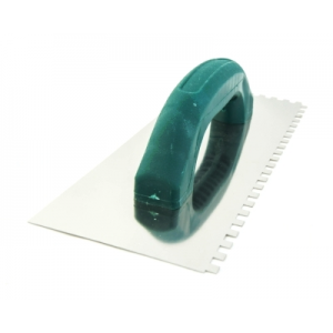 3. ใช้เกรียงหวีด้านเรียบปาดกาวซีเมนต์ลงบนพื้นสระว่ายน้ำให้เพียงพอ