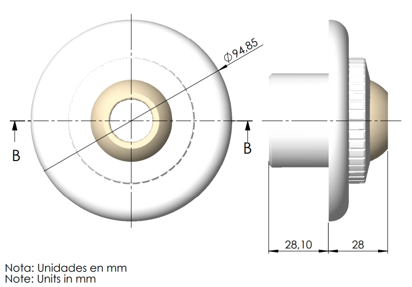 MULTIFLOW RETURN INLET 95x28 TO GLUE INSIDE Ø50mm.